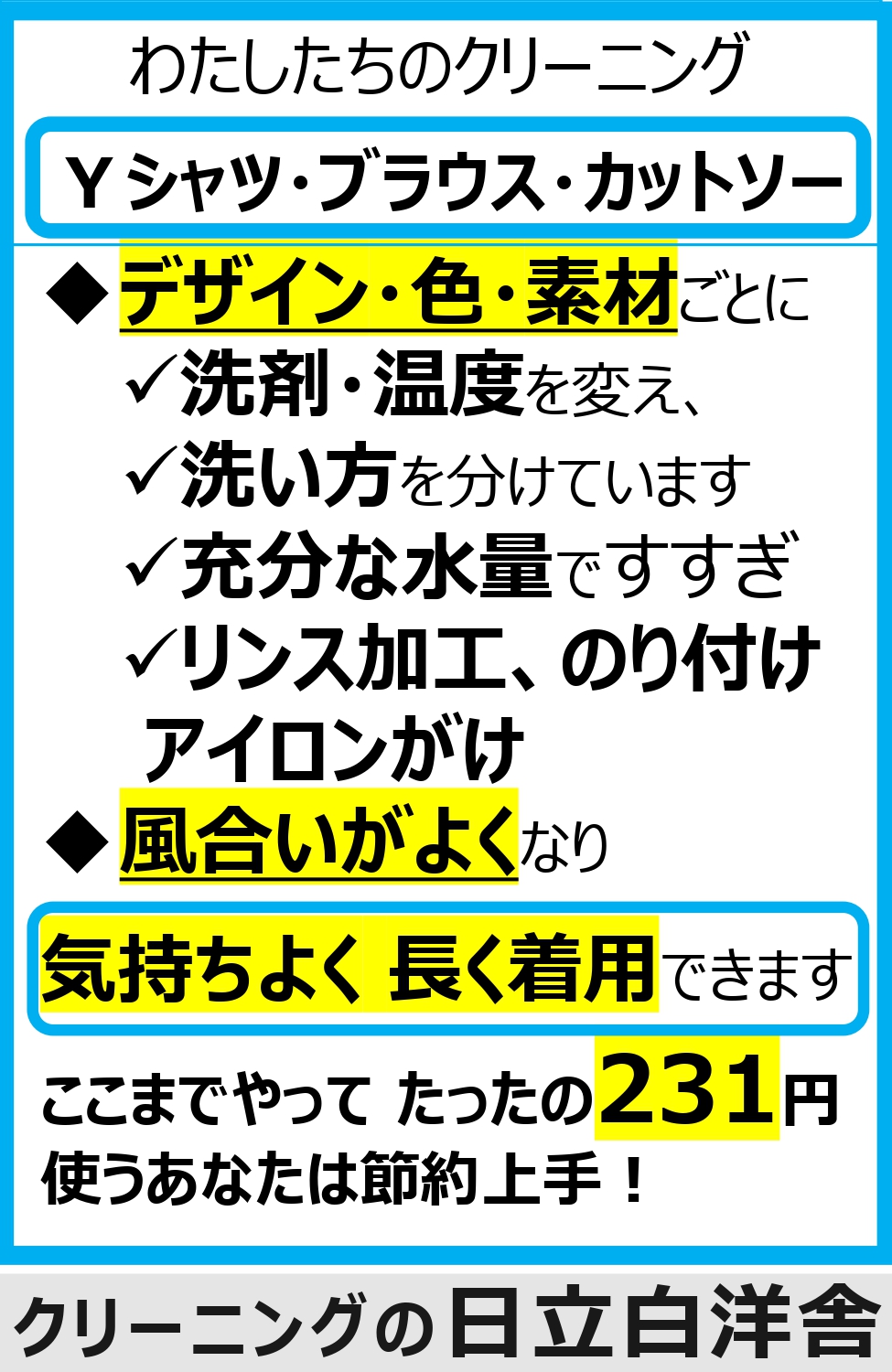 日立市:信頼されるクリーニング実績とシミ抜き技術でまごころこめてお客様の大切な衣類をお預かりいたします。